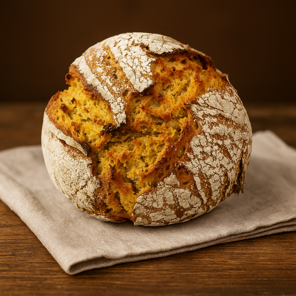 Boa de Milho a nossa broa é feita com farinha de milho Real, centeio e trigo. É uma broa autêntica por isso mesmo não tem qualquer adição de açúcar, tal como todos os nossos pães também é feita com massa-mãe. Apresenta uma crosta crocante e um miolo que não esfarela e uma acidez muito suave que não se sobrepõe ao sabor a milho. Com 24 horas de fermentação.